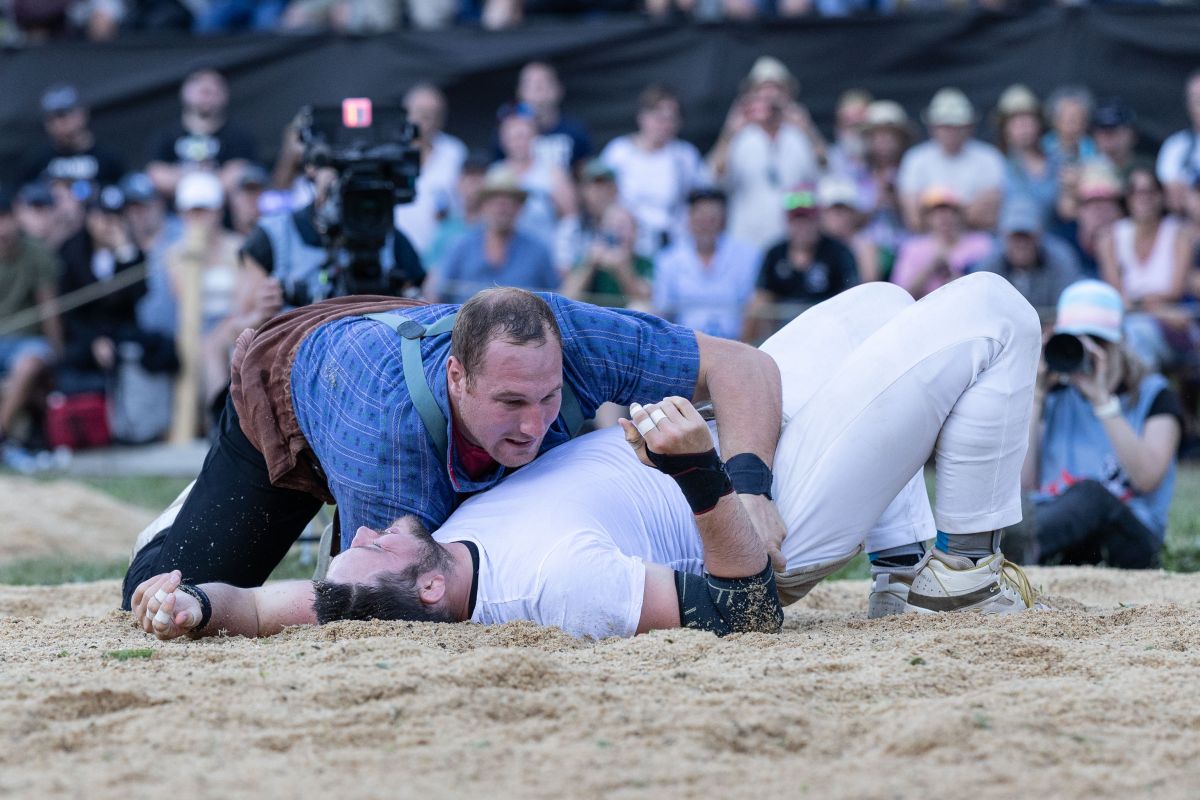Joel Wicki wurde seiner Favoritenrolle voll und ganz gerecht. Schon nach drei Gängen lag er an der Spitze der Zwischenrangliste. Mit seiner ganzen Routine und kompromisslosen Angriffs-Schwingkunst entschied er auch den Schlussgang souverän für sich und gewann mit 59.25 Punkten das Fest. Damit sicherte er sich nicht nur den Tagessieg, sondern bestätigte erneut, dass er aktuell der dominierende Schwinger in der Innerschweiz ist.